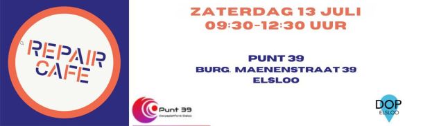 Iedere 2e zaterdag van de maand vindt in Punt 39 het Repair Café plaats. Ook tijdens de zomervakantie gaan wij gewoon door!