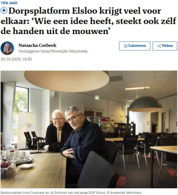 Elsloo viert tien jaar Dorpsplatform met een burendag, wandelingen en een muziekmiddag. Al tien jaar lang brengt het platform jong en oud samen met activiteiten die de leefbaarheid en verbondenheid i…