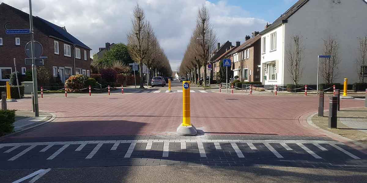 De door velen verguisde gele paaltjes -middengeleiders in vakjargon- op het kruispunt Koolweg - Rembrandtstraat - Burg. de Witstraat verdwijnen weer.